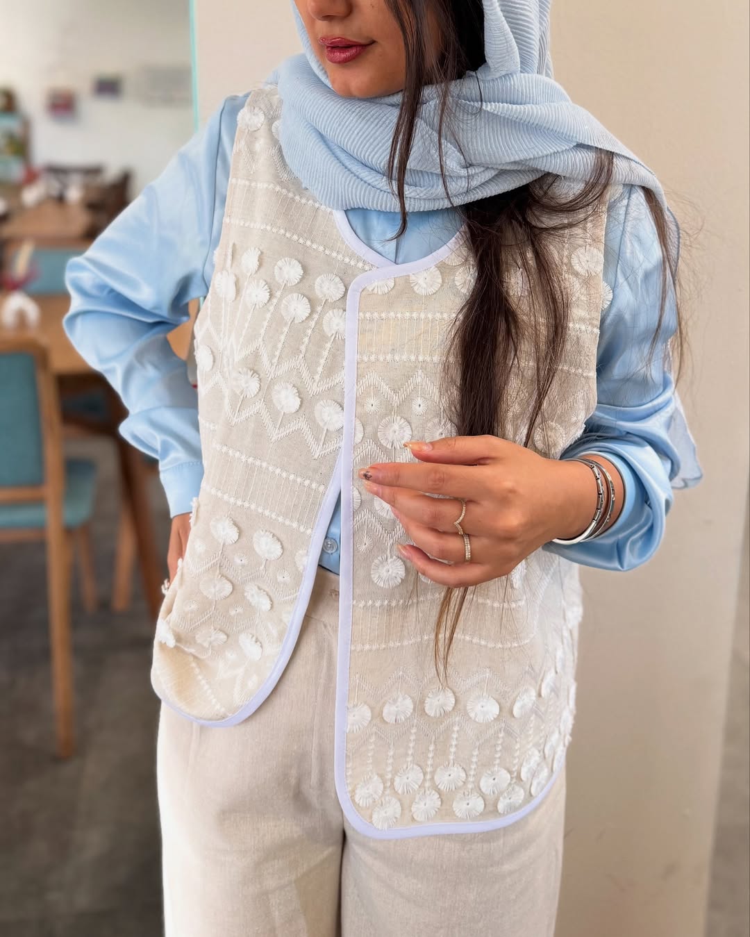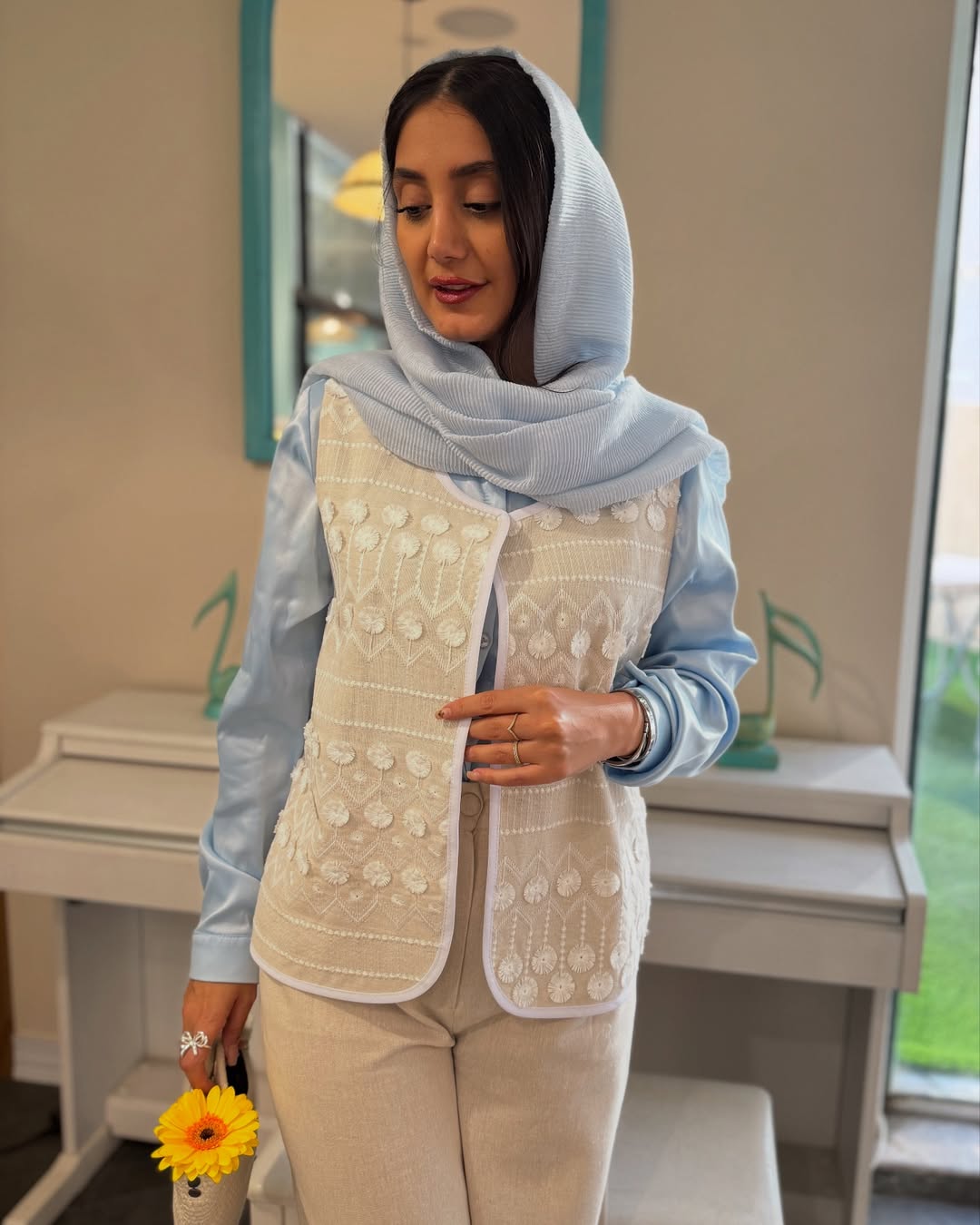 اگه قبول داری ترکیب رنگ کرم و آبی یه جور دیگه قشنگه این پست ورق بزن . کسایی که به جزئیات اهمیت میدن میدونن این کار با پارچهی خاصش چطوری استایلش شیک میکنه . @farahh_style @farahh_style توی پیجم کلی لباس به سلیقت هست که بیای پیشم موندگار میشی . . . کالکشن بهار . وست فلاور تک رنگ تصویر سایزبندی: ۱۲ قدتصویر :قابل تغییر) با احترام : ۶۶۰تومان •••••••••••••••••••••••••• شومیز ساتن قد : قابل تغییر) رنگبندی: بالای ده رنگ سایزبندی: ۱۲ با احترام : ۶۰۰تومان ••••••••••••••••••••••••• شلوار بهار سایزبندی: ۱۲ قد: ۱۰۷ جنس: لینن ترک با احترام : ۷۰۰تومان . . . .