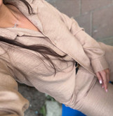 شومیز زنانه لینن ترک کارامل